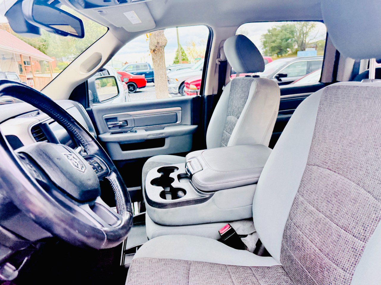 Hop into this sleek Burgundy 2019 RAM 1500 Classic and get ready for a thrilling ride! This beauty is not just a truck; it's your trusty sidekick for all of life's adventures with its 4-wheel drive capabilities. Whether you're cruising down the highway or navigating through busy city streets, rest assured that you're in good hands with the array of safety features that this vehicle offers. this Ram also has a added Bedliner, back up camera, and a hitch so you can tow with confidence. With its sturdy ABS brakes and multiple airbags strategically placed throughout the cabin, you can drive with peace of mind knowing that you and your passengers are well-protected. The spacious front split bench seat ensures that everyone has a comfortable spot to relax during the journey, while the power windows make adjusting the airflow a breeze. So, buckle up, roll down the windows, and hit the road in style with this fantastic RAM 1500 Classic!